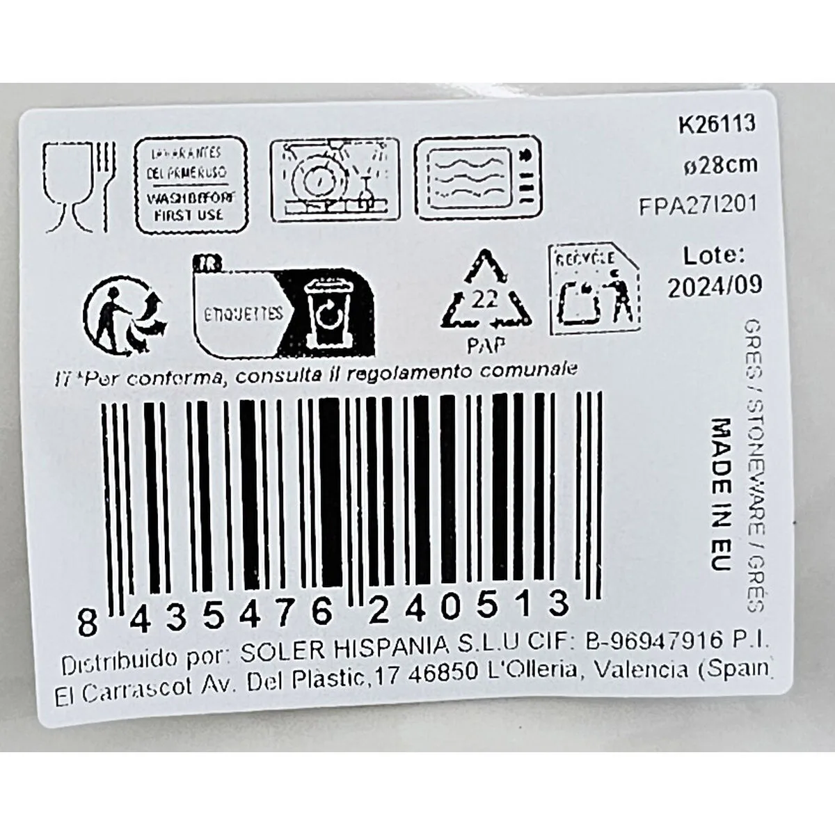 - Dimensions approx.: ø 28 x 6,8 cm