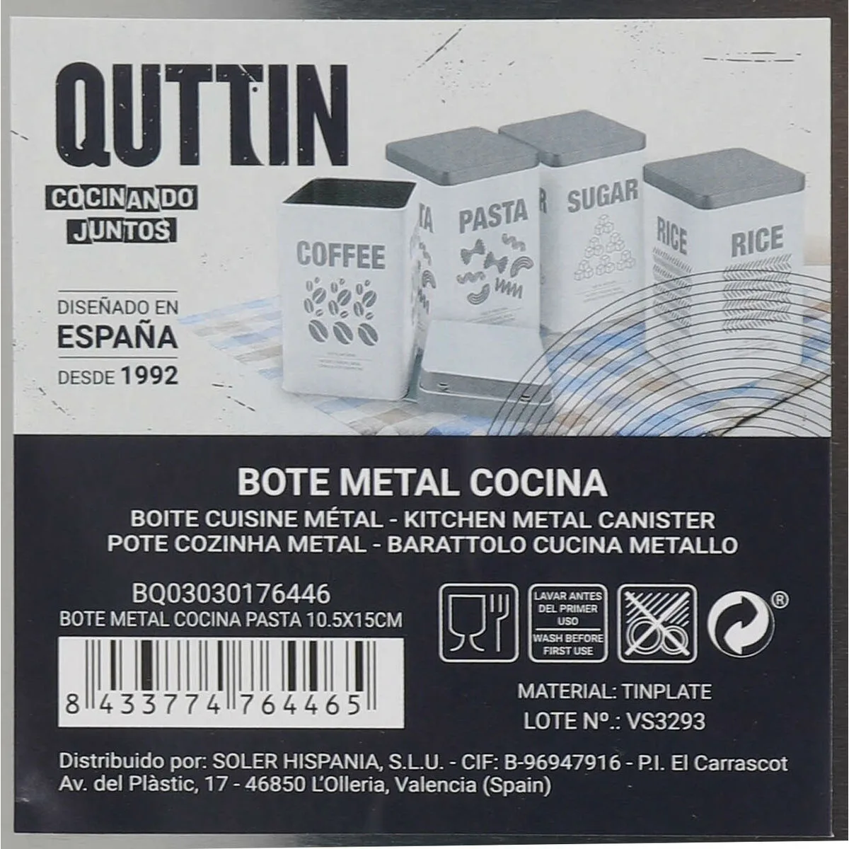 Si vous aimez prendre soin de chaque détail de votre maison et d’être à la dernière mode en matière de produits qui vous rendront la vie plus facile, achetez Boîte en métal Quttin PASTA (12 Unités) au meilleur prix.