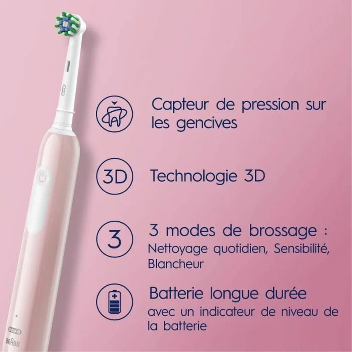Brosse à dents électrique Oral‑B Pro 1 Rose – Hygiène buccale premium Brosse à dents électrique Oral‑B Pro 1 Rose