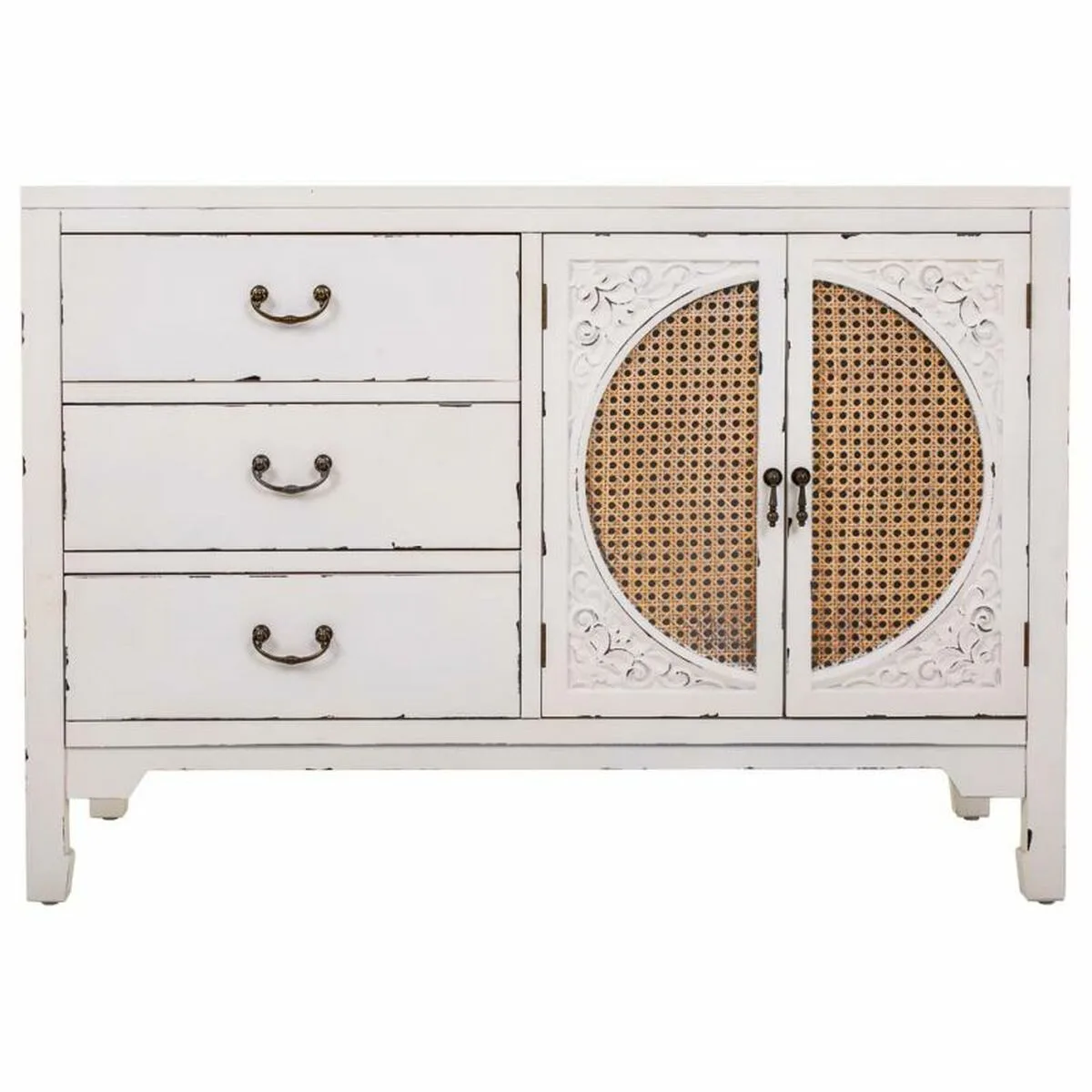 Vous voulez donner une touche d’originalité à votre maison ? Vous y arriverez grâce au Buffet Alexandra House Living Blanc Rotin Bois d’épicéa 36 x 73 x 106 cm.