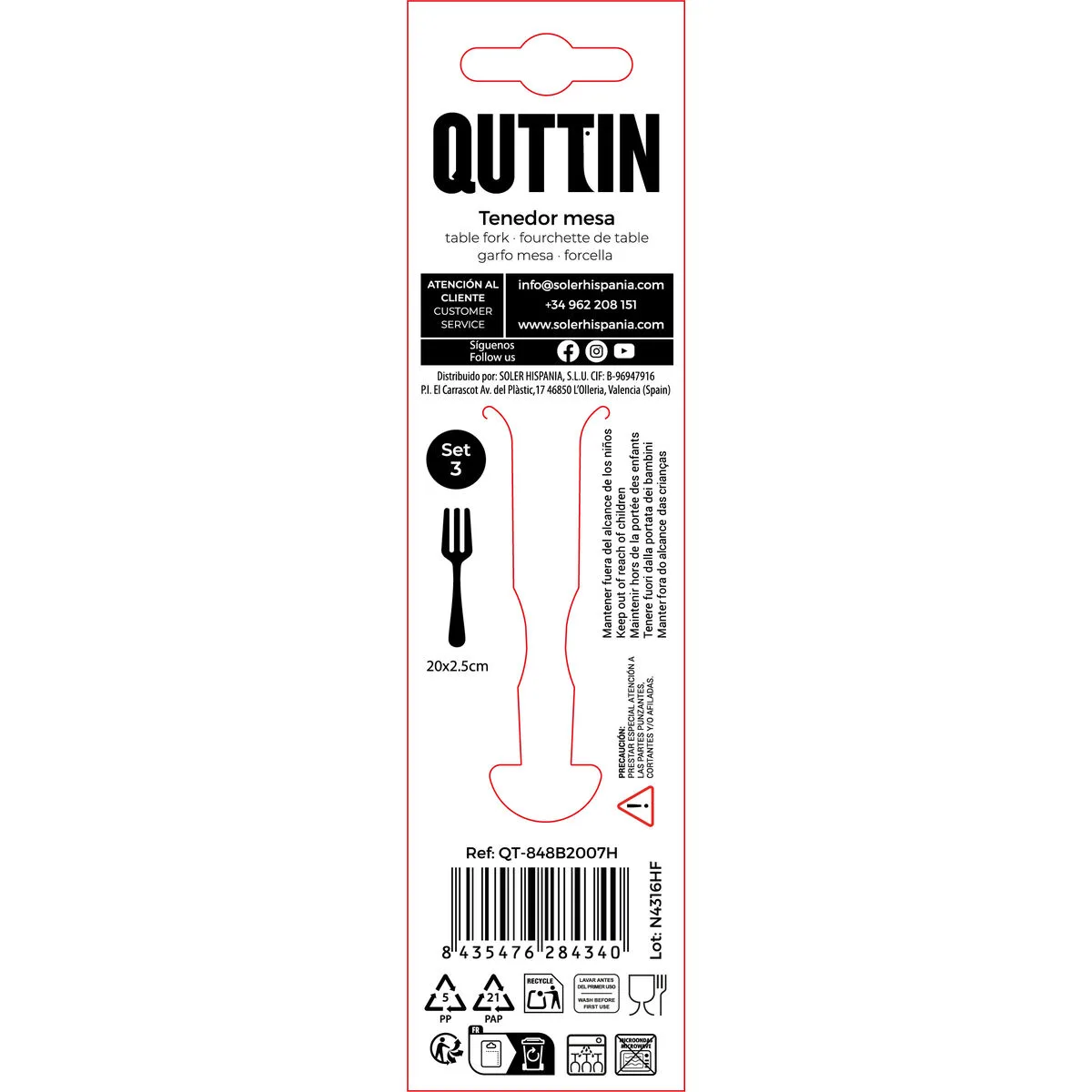Soyez le premier à laisser votre avis sur “FOURCHETTE QUTTIN CLASSIC 20 X 2,5 CM 2 MM 3 PIÈCES (12 UNITÉS)” Annuler la réponse