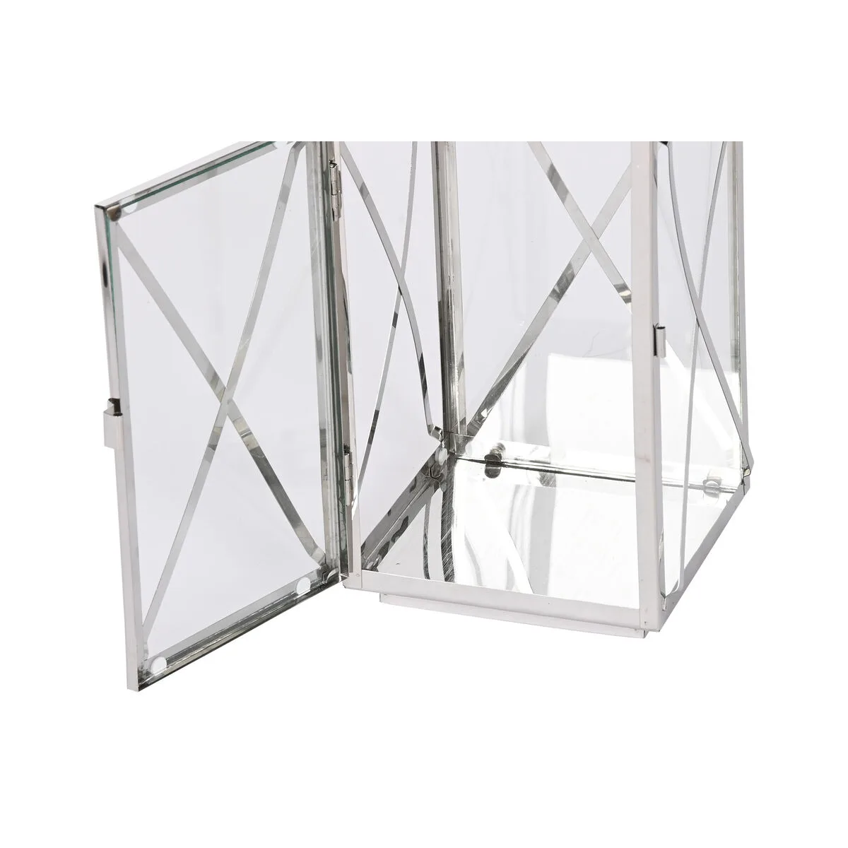 LANTERNE HOME ESPRIT ARGENTÉ VERRE ACIER CHROME 20 X 20 X 48 CM (3 PIÈCES)