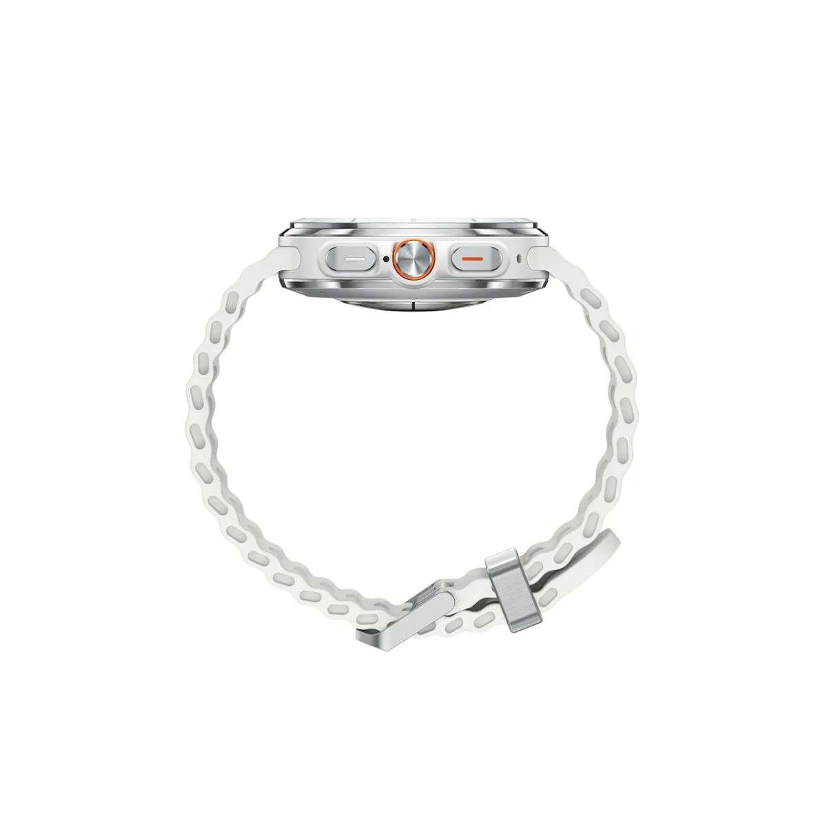 Grâce aux haut‑parleurs et microphone intégrés, passez des appels sans sortir votre téléphone. Les applications natives Samsung vous offrent notifications en temps réel, contrôle de la musique et assistants vocaux. Le boîtier rond en aluminium blanc offre un look minimaliste qui s’accorde avec toutes les tenues.