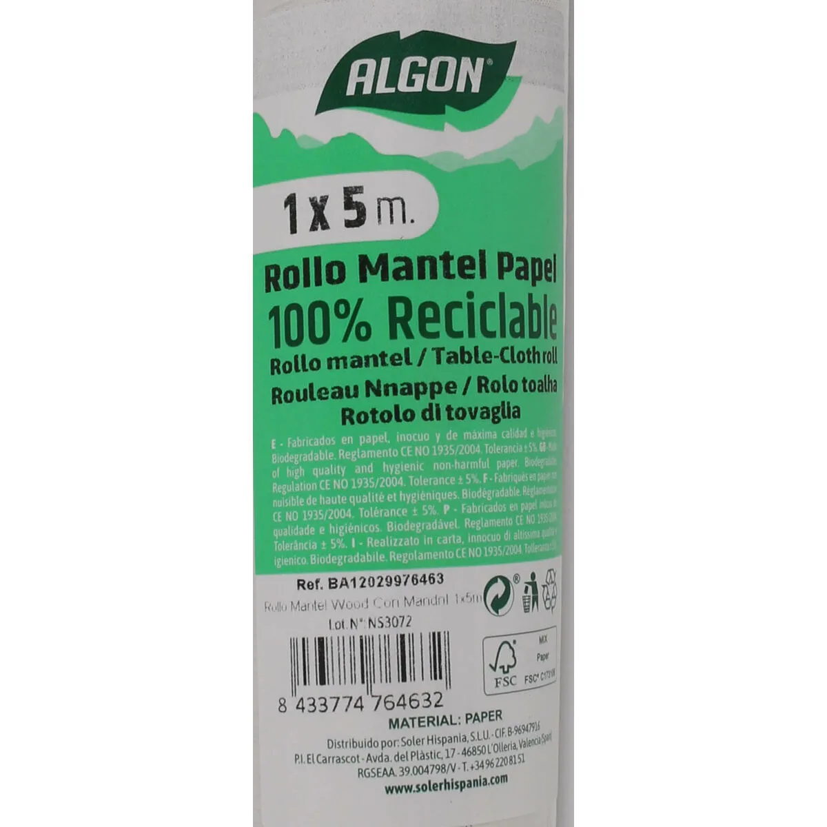 Accueil Déguisements NAPPE EN ROULEAU ALGON PRODUITS À USAGE UNIQUE BOIS 1 X 5 M (16 UNITÉS)