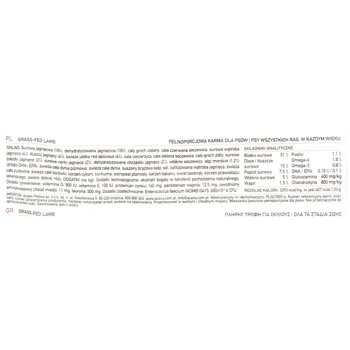 NOURRITURE ACANA AGNEAU 17 KG
